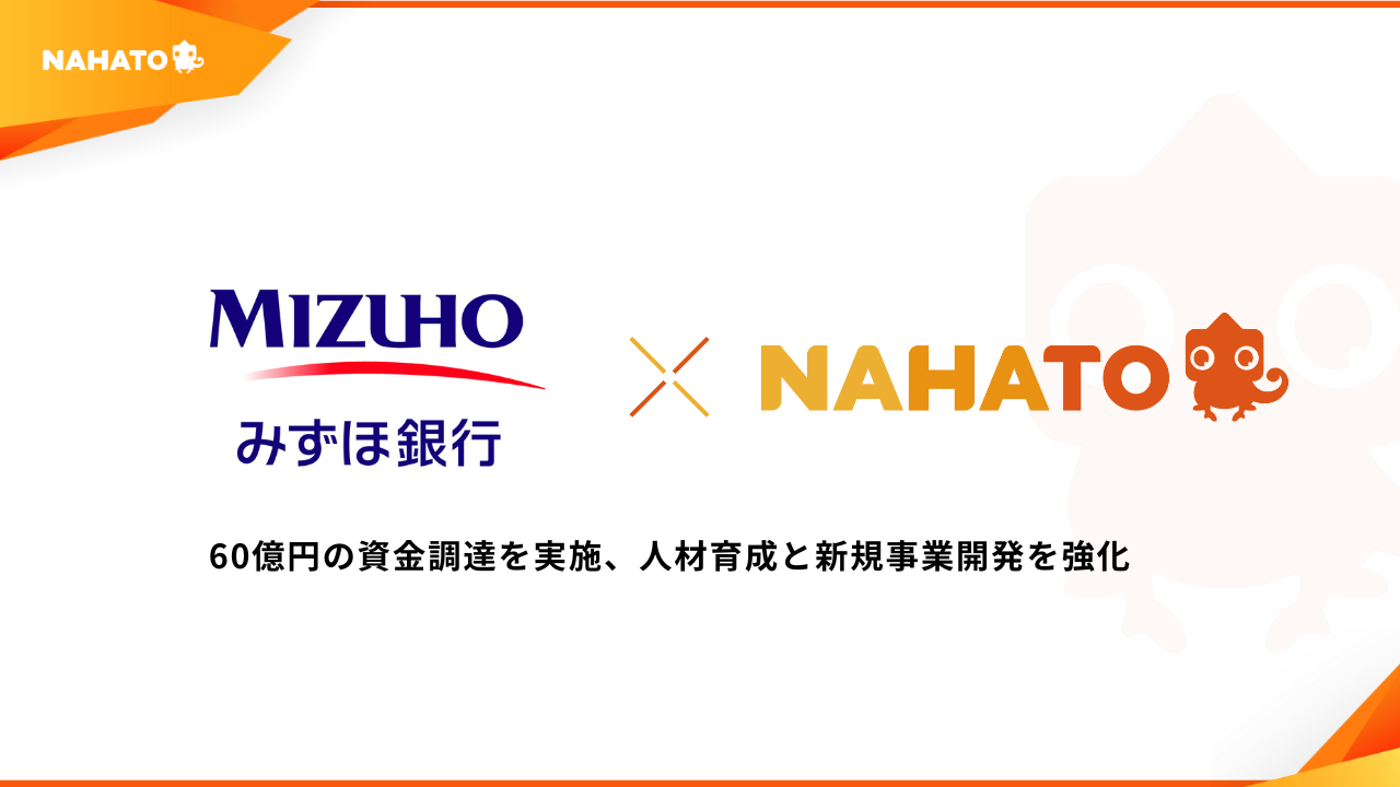 株式会社ナハト(本社:東京都渋谷区、代表取締役:安達友基、以下「ナハト」)は、株式会社みずほ銀行(東京都千代田区、取締役頭取:加藤 勝彦、以下「みずほ銀行」)から、60億円のデットファイナンスによる資金調達を実施したことをお知らせいたします。