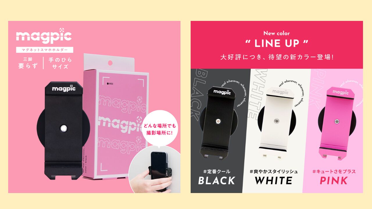 magpic(マグピク)は、「スマホ撮影をもっと自由に、もっと身近に」というコンセプトのもと、2024年7月からナハトグループのBoldiesが販売するスマートフォン用マグネットホルダーです。街頭の鉄柱や手すり、自動販売機など、マグネットが張り付く金属面に取り付けて撮影することができ、Z世代を中心に“撮影サポートアイテム”として高い支持を集めています。