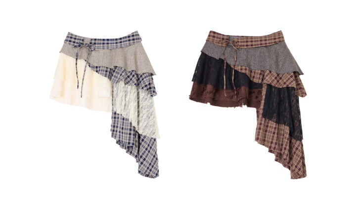 アイドル衣装から着想を得た、動きのあるシルエットが特徴的なミニスカート。取り外し可能なパーツによってシンプルなミニスカートとしても着用できる2WAY仕様。落ち着いたトーンの生地を採用し、デイリーに取り入れやすく仕上げています。