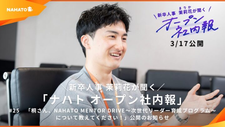 【オープン社内報更新】#25 「桐さん、NAHATO MENTOR DRIVE〜次世代リーダー育成プログラム〜について教えてください!」